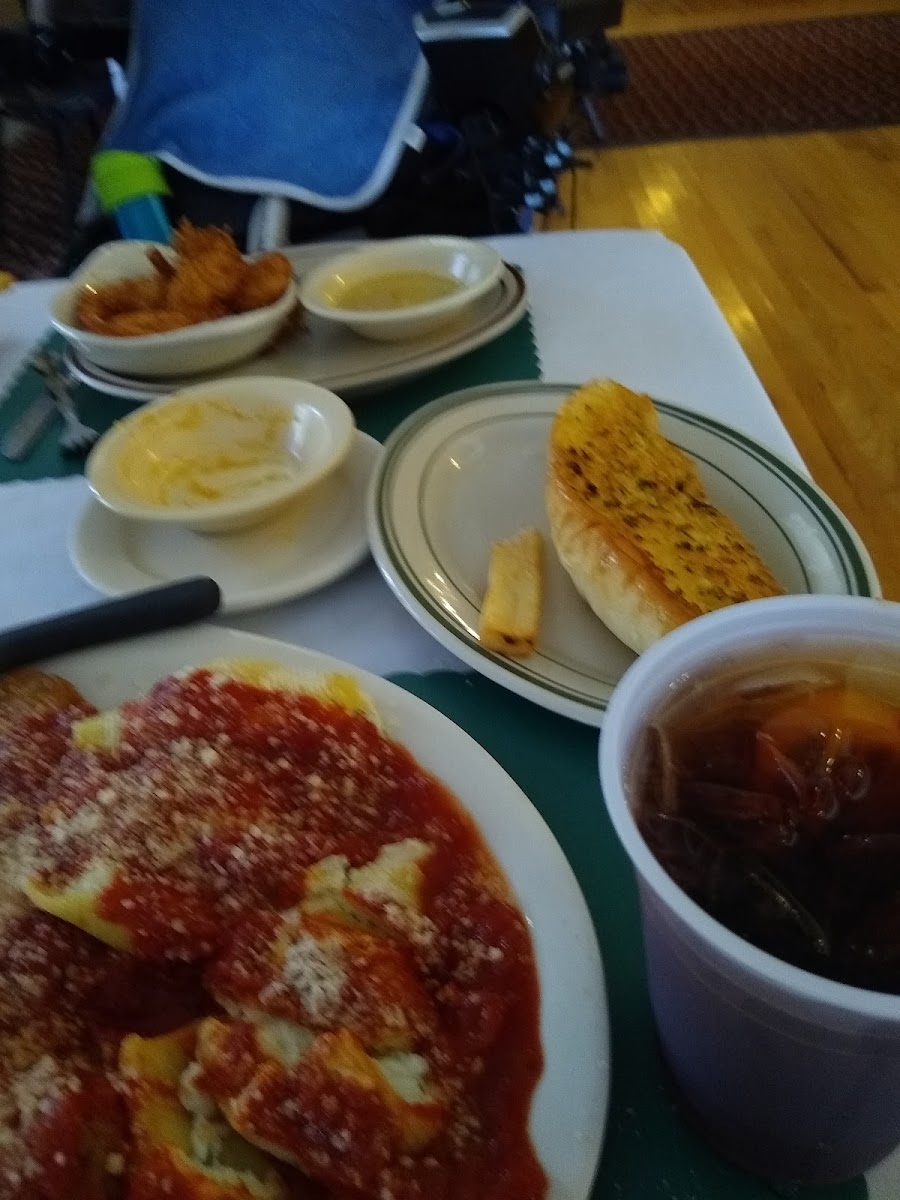 The wing dings were crispy and delicious. I had the peppercorn Parmesan steak. It was cooked to perfection. Butternut squash was steaming hot and yummy. Mom got the biggest plate of spaghetti and meatballs I have ever seen. She loved it but had to take half of it home. Friendly waitress and fast service.