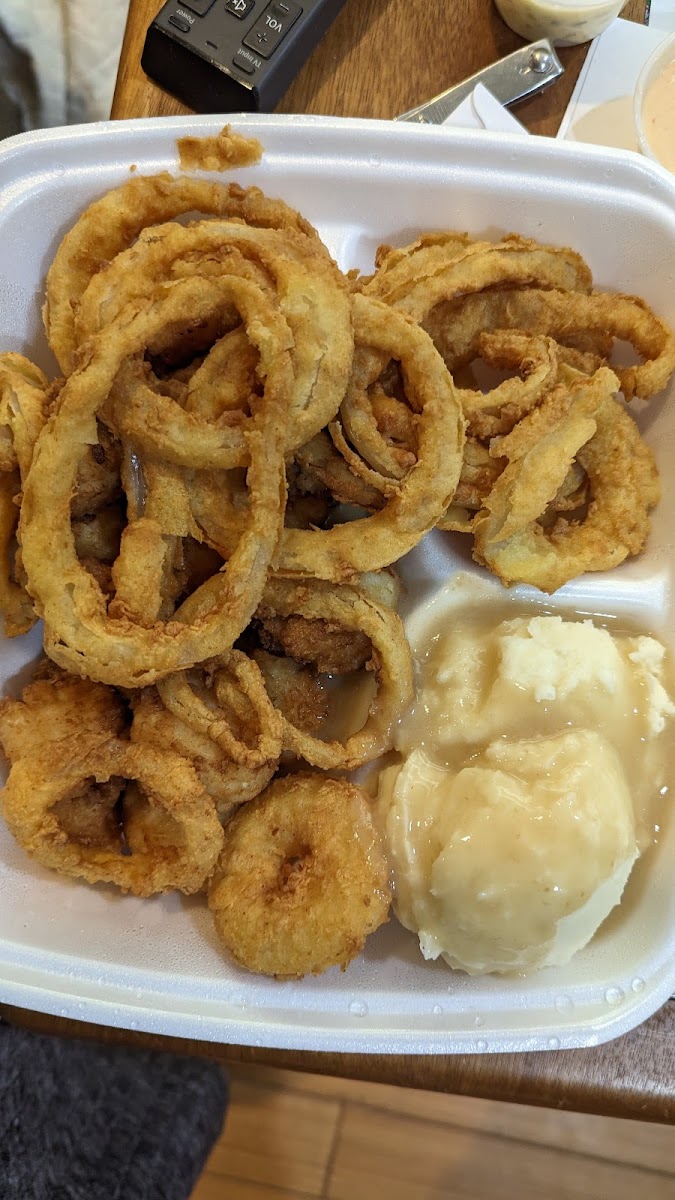 We ordered takeout on a Saturday night. My Grandmother got a stuffed quahog, my Son had the Fish & Chips, & I had the Boneless Fried Chicken Dinner all White Meat with Coleslaw & Fries. Everyone loved their food and ate it all up. The order placement was easy when I called in my order as an online order was almost $4 extra each dish. Restaurant when picking up the order was super easy . Food for the amount and considering the place is worth it. The vibe feels comforting and like home. The place was clean from what I could see. I will definitely order from this place again in the future as a treat. I got the carrot cake as a dessert. It was super yummy creamy and delicious. So many different desserts to choose from. The fish and chips had an excellent amount of batter and fish was flakey. This place can also hold events of all types. Staff interaction was great friendly service with a smile. I didn't have to wait long for my takeout order. I placed my order and it was ready within 15 minutes.